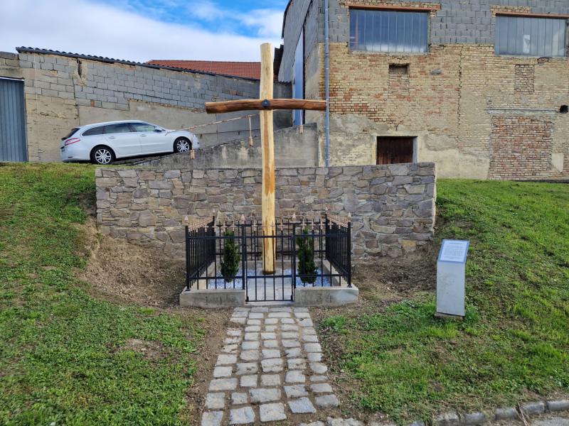 In der Pfarrchronik findet man dazu im Jahr 1934 folgende handschriftliche Aufzeichnung von Pfarrrer Anton Rapf: „Am 13. März 1934 wurde das Kreuz hinter dem Hause des Josef Rehm erneuert. Das Kreuz selbst ließ Herr Josef Rehm beim Firmkranz in Ziersdorf um damals 28 Schilling machen, während den Korpus Herr Jenewels aus Rosenburg malte. Herum um das Kreuz, war früher ein kleines Gärtchen mit Holzzaun, der schon sehr defekt war. Statt des Holzzaunes wurde ein Eisengitter auf Be-tonsockel gemacht.“ Im Jahre 1979 wurde das Kreuz von Fam. Josef Plam renoviert; 1989 errichtete die Katholische Jugend die rückwärtige Steinmauer.
