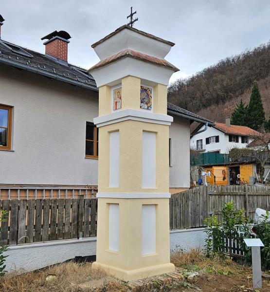 | Bei besonderen Objekten: Beschreibung von Details | In der Richtung Westen zeigenden Nische befindet sich ein von Dechant P. Florian Brückelmayer aus Mautern gespendetes Mosaik, das Maria mit Jesus darstellt und von P. Roman Morandell, einem Benediktiner aus Salzburg, stammt. In die nach Norden zeigenden Nische wurde 2025 ein von der Furthner Hpbbykünstlerin Renate Obritzberger geschaffenes Keramikbild, das den Heiligen Nikolaus als Patron der Bäcker darstellt, eingesetzt. |