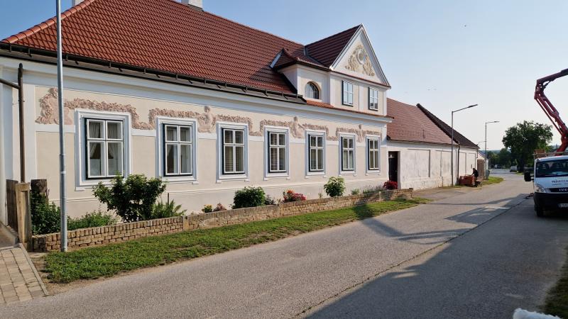 | Chronik - allfällige Ergänzungen: (z.B. Sagen, Legenden, Überlieferungen ausführlicher) | Nach dem Hagel 2021 wurde das Haus 2023 vom Restaurator Michael Schnaubelt aus 3511 Eggendorf, Furthnerstr. 48 als Sub-Unternehmer der Fa. Watzinger restauriert und von der Fa. Posch aus Hausleiten das Dach neu eingedeckt! |