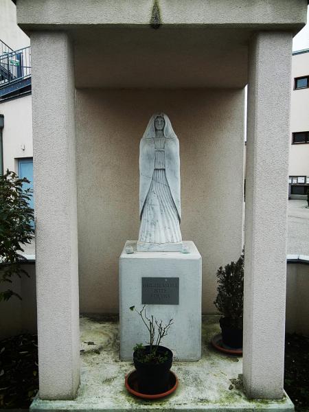 | Beschreibung des Objekts (Deutung, Material und Technik) | Die aus Marmor gefertigte Statue der Hl. Maria ist 80 cm hoch und steht auf einen 1 m hohen Sockel aus Kunststein. Geschützt wird die Skulptur durch eine Einhausung aus Beton. |