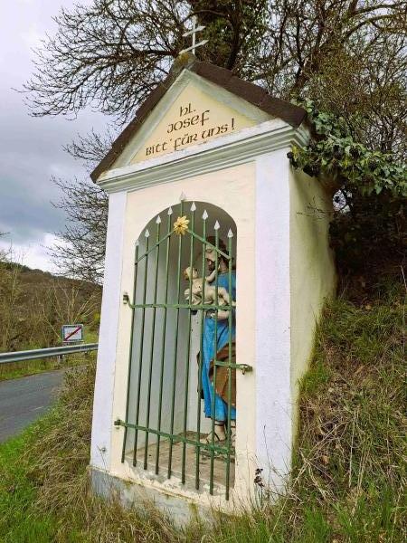 Anlassbezogen errichtete man ein Marterl mit der Figur des Heiligen.