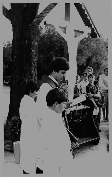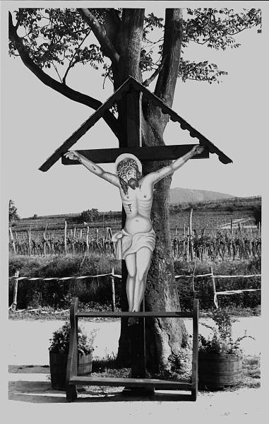 | Beschreibung des Objekts (Deutung, Material und Technik) | An der Gabelung des Neubergwegs mit dem Schanzweg befindet sich dieses hölzerne Dachkreuz mit auf Blech gemaltem Christus-Korpus. Besonders auffällig ist der Standort auf einer kleinen, kreisförmigen Grünfläche inmitten des Weges im Schatten einer Sommerlinde. |