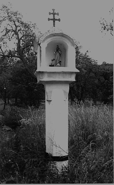 Ein achteckiger, von einem Eisenring umschlossener oktogonaler Schaftpfeiler trägt einen wuchtigen segmentbogigen gemauerten Tabernakel mit Erkernische. Gekrönt von einem Pyramidendach mit Doppelkreuz. In der Nische befindet sich eine neuzeitliche Herz-Jesu-Statue.