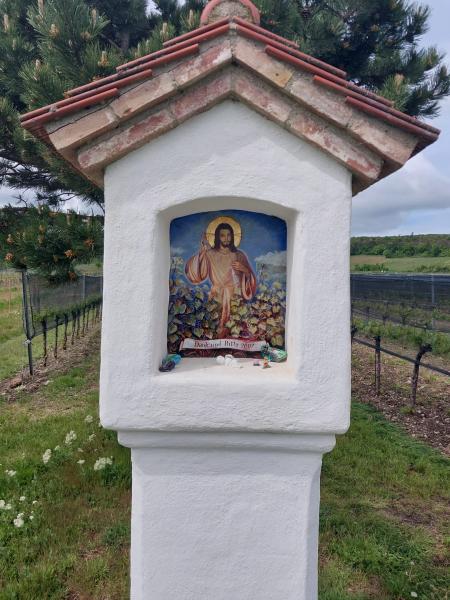 Errichtet aufgrund eines Gelöbnisses von Martin Schwertführer - Wasserquelle gefunden. Erbaut von Ing. Benedikt Mayer und Martin Schwertführer. Das Bild stamm von Johann Minarik und zeigt den barmherzigen Jesus im Weingarten. Erbaut 2007 und Einweihung 20.07.2007.